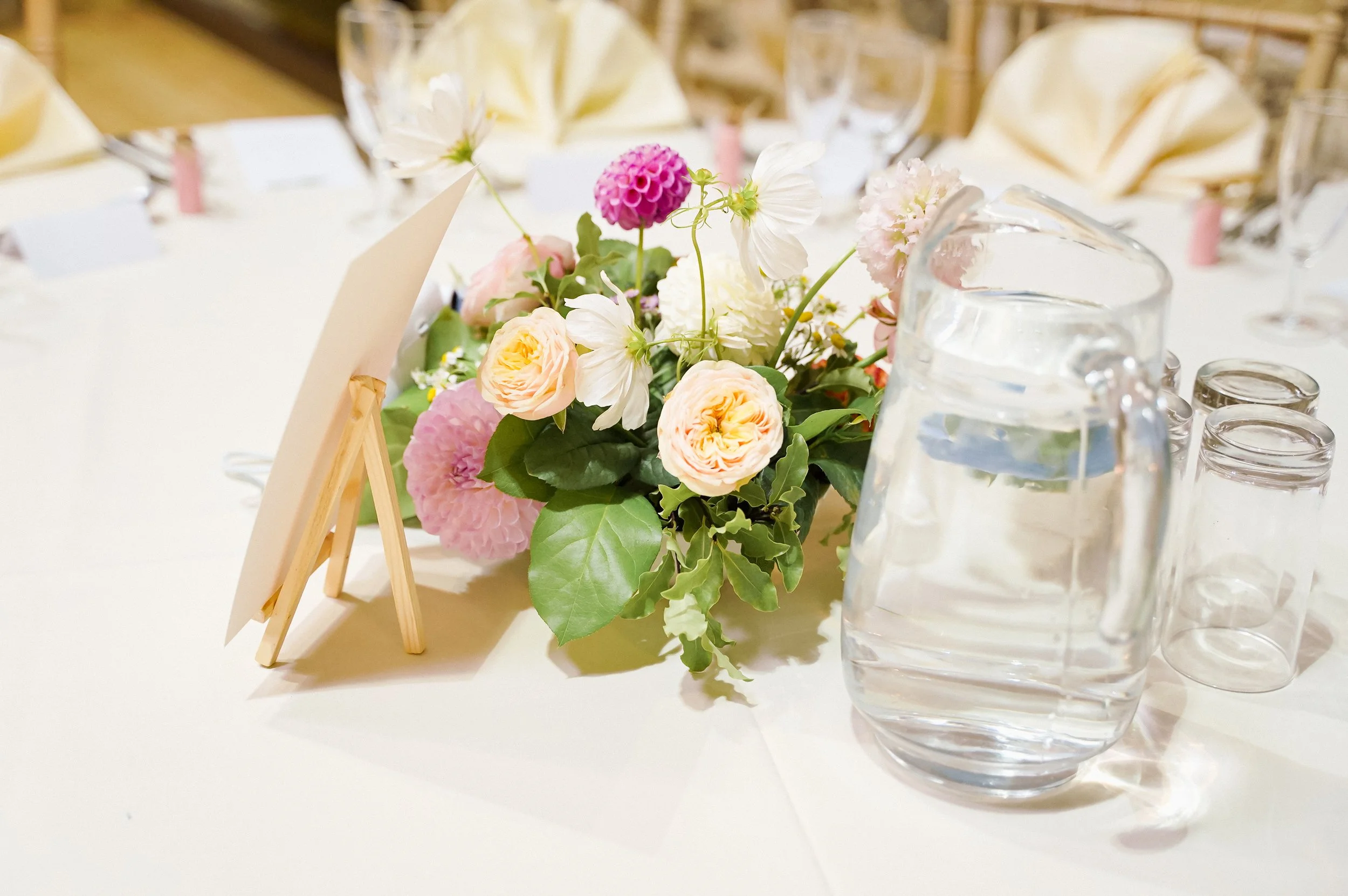 To keep within the clients budget, we repurposed their aisle flowers as table centre pieces. This is something that I strongly recommend to all of my wedding couples. Why only enjoy the flowers that are only going to be part of your ceremony for a short space of time! Most wedding venues are happy to move arrangements around to suit your special day.
